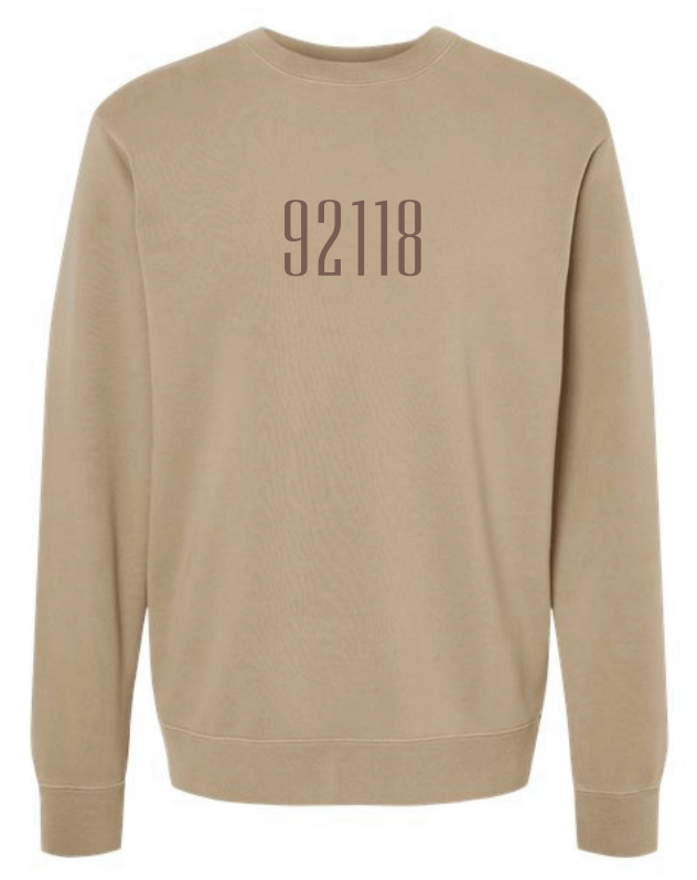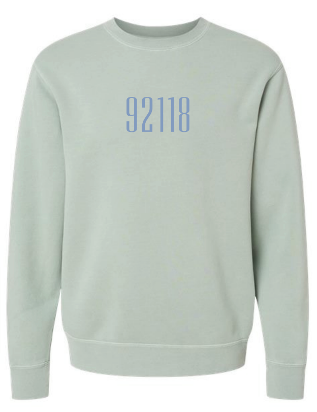 Stonewashed sweatshirt with Coronado zip code, 92118.