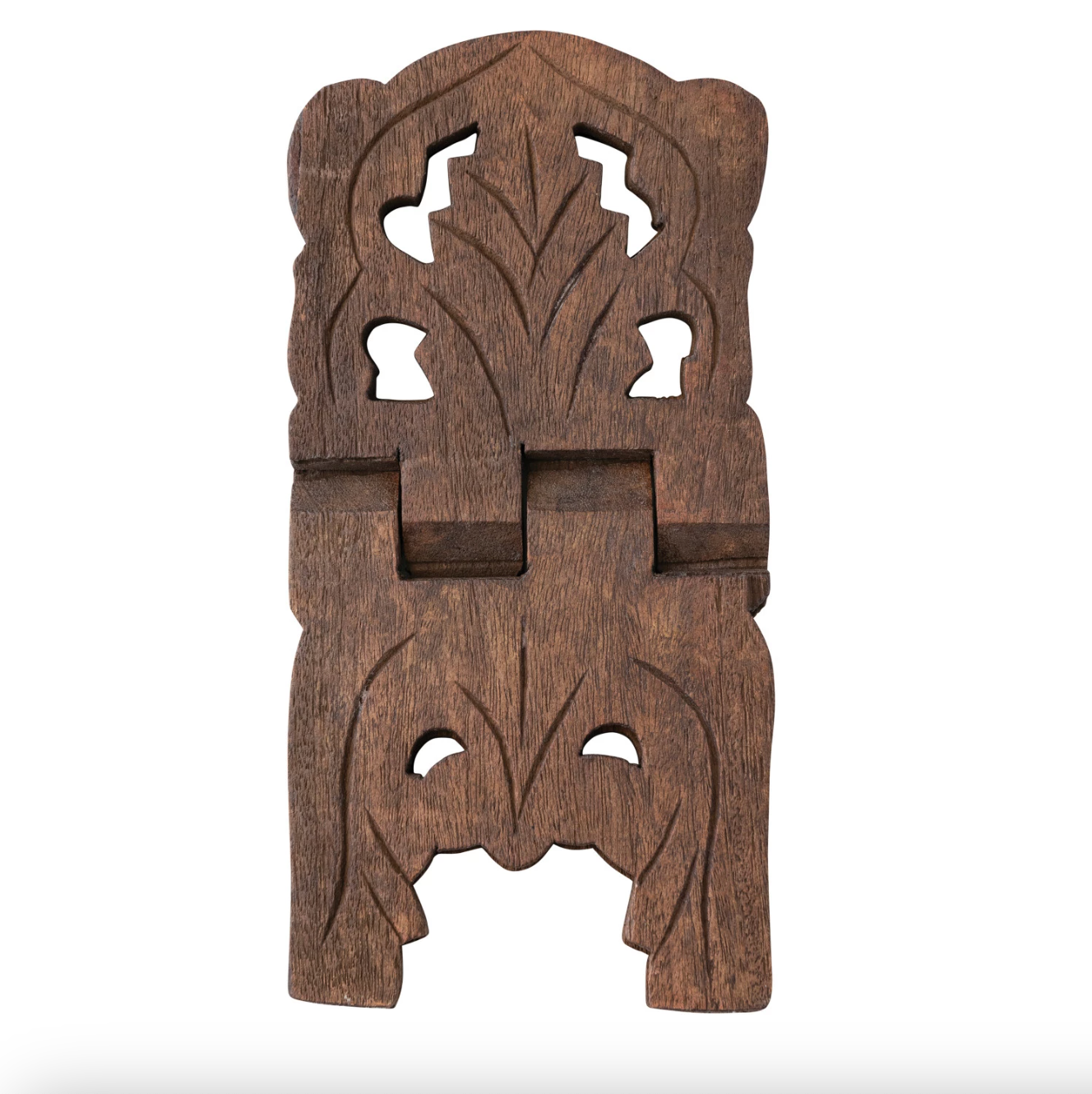 The Reclaimed Wood Book Holder is a beautifully designed piece that combines rustic elegance with practical use. Crafted from reclaimed wood, it highlights the unique grain patterns and weathered textures of repurposed materials, making every holder one-of-a-kind. With its sturdy construction, it offers reliable support for books, cookbooks, or tablets, making it an ideal addition to any reading nook or kitchen countertop.